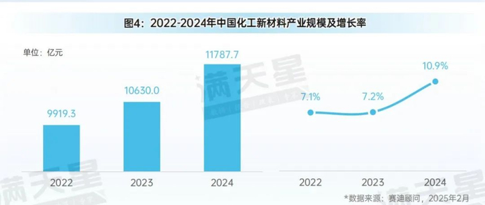 图4:2022-2024年中国化工新材料产业规模及增长率