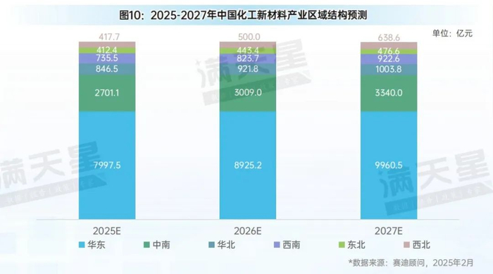 图10:2025-2027年中国化工新材料产业区域结构预测