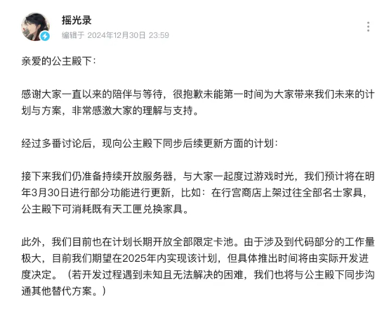 《摇光录:乱世公主》停更,玩家维权