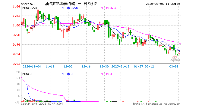 3月6日,截止午间收盘,油气ETF华泰柏瑞(561570)涨0.32%,报0.941元,成交额3375.00元。油气ETF华泰柏瑞(561570)重仓股方面,中国石化截止午盘涨0.00%,中国海油跌0.40%,中国石油跌0.39%,广汇能源涨0.00%,杰瑞股份跌2.18%,招商轮船跌0.48%,卫星化学跌0.24%,恒力石化涨0.25%,荣盛石化跌0.46%,中远海能涨0.09%。