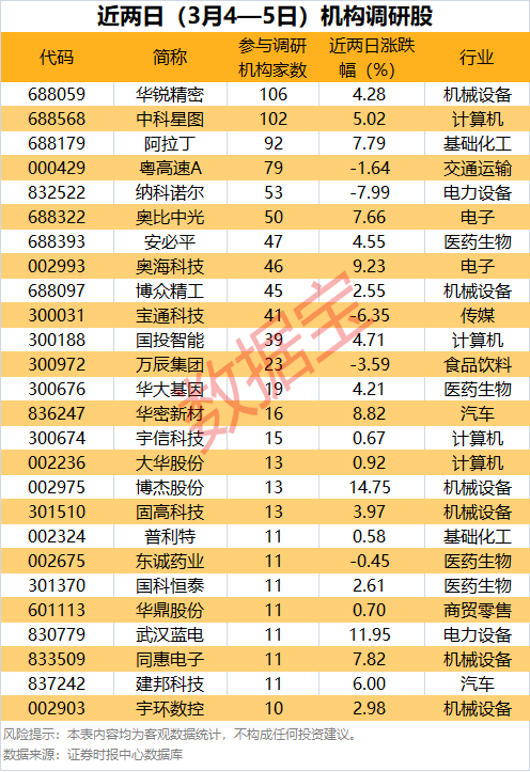 近两日(3月4日至3月5日)共有76家公司公告机构调研记录,其中,26家公司获10家以上机构扎堆调研,两股有逾百家机构调研。