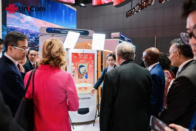 基于元景文博文创大模型的赋能,中国联通在本届巴展中为国际观众带来“智衣衿文创互动体验平台”,依托数字孪生、三维建模等创新技术,与中国国家博物馆联合打造“中华文明云展(二期)”,将博物馆实体展厅映射到数字空间,数智人“艾雯雯”陪伴式导览,打造沉浸式漫游观展体验,吸引了大量国际观众驻足。