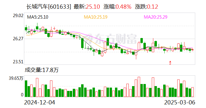 长城汽车1-2月销量下滑近一成 魏建军2025年目标400万辆