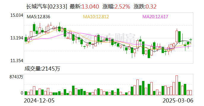 国投证券表示,长城汽车新车上市在即。3月,2025款坦克300多动力版本已开启预售,即将于3月10日正式上市,有望贡献显著增量;新车开启预订后,24小时订单突破4369辆。