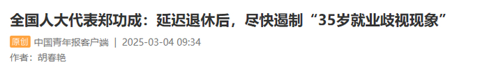 据中青报此前报道,全国人大代表、中国社会保障学会会长、中国人民大学教授郑功成认为,35岁限制入职现象必须引起高度重视,主管部门应进行有效干预。