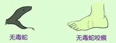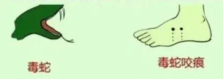 ● 判断:通过咬痕判断是不是毒蛇咬伤,若伤口有明显的1~2个洞状伤口,那就是被毒蛇咬了。若伤口是2排细小伤口,则是无毒蛇所伤。
