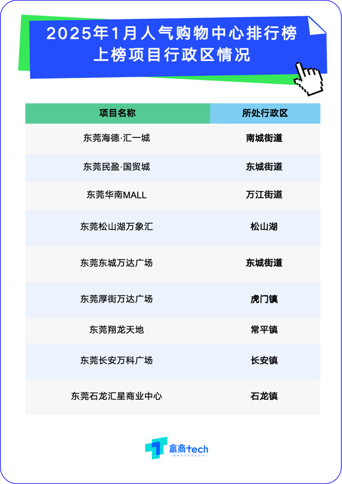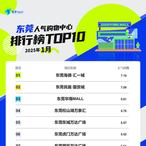 在赢商股份最新发布的《2025年1月人气购物中心排行榜》中,东莞头部标杆购物中心强势突围,海德汇一城、民盈国贸城等商场以超7的人气指数,与广深、成都等商业强市的优质项目同台竞技。
