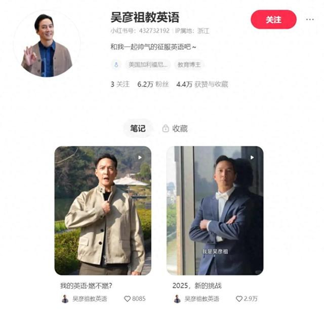近日,吴彦祖在抖音、小红书等平台开设“吴彦祖教英语”账号,发布2条视频推荐其开设的英语课程,引发广泛关注。