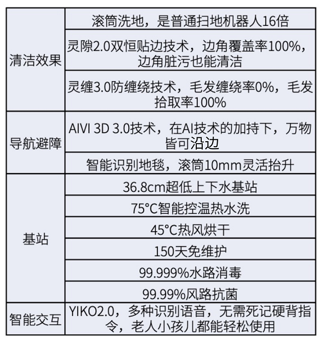 国家备案的AI大模型:依托YIKO大语言模型与先进算法,能精准理解用户指令。其搭载的“科沃斯机器人大模型算法”也是国内家用机器人领域首个获国家网信办备案的大模型算法。无论是简单的开始清洁、回充,还是复杂的分区清洁、重点区域清洁,都能轻松执行。