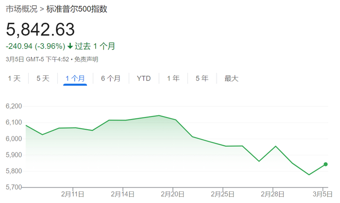 自2月中旬以来,以科技股为主的纳斯达克综合指数已下跌7.5%,标普500指数较2月19日创下的历史新高下跌约5%,而代表小型公司的罗素2000指数自1月末以来已下跌9.4%。