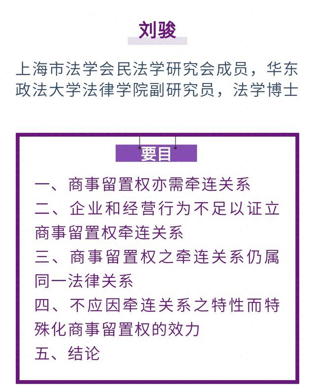 刘骏|商事留置权的“祛魅”:以牵连关系为中心