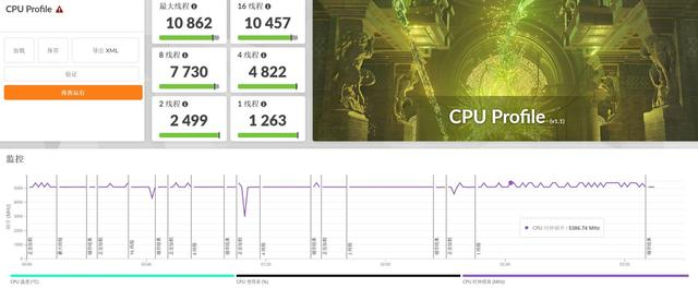 3DMark单线程到多线程测试,酷睿Ultra 9 285H处理器单线程得分1263,最大线程得分10862,同样比上一代同级处理器要高出一些。