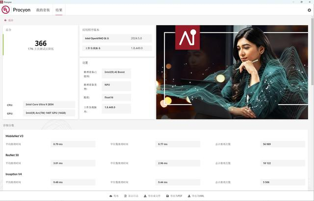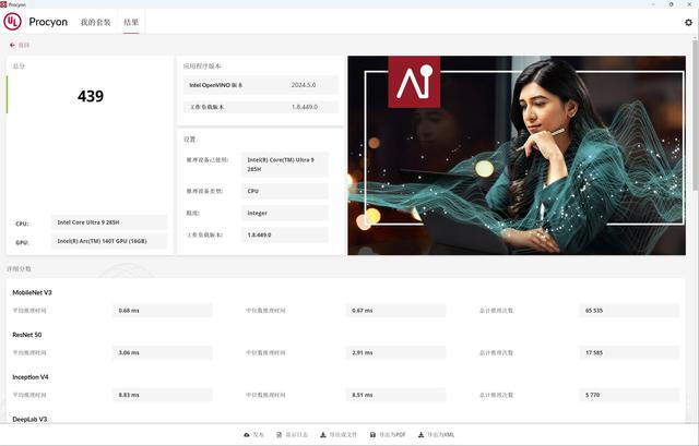 接下来再看看UL Procyon对于CPU、GPU和NPU的性能评估。