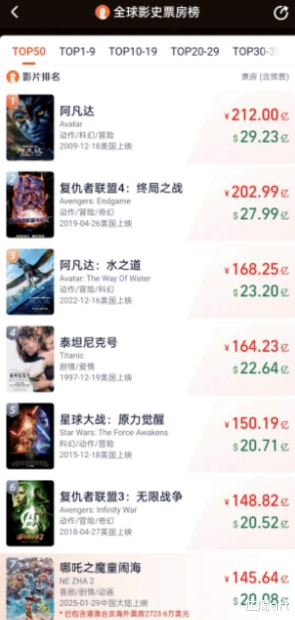 在全球电影市场的激烈角逐中,《哪吒之魔童闹海》(下称《哪吒2》)宛如一颗横空出世的璀璨巨星,以雷霆万钧之势改写票房格局。截至目前,其全球累计票房已强势突破145亿元人民币,这一傲人成绩不仅稳稳占据国产动画影史榜首之位,更如同一匹无人能挡的黑马,成功超越《蜘蛛侠:英雄无归》(141.6亿),一举跃居全球影史票房第七位。当下,影片仍以日均数千万的票房增速一路狂飙,正火力全开地向《阿凡达:水之道》(168.25亿)的全球第三名宝座发起猛烈冲击。业内诸多资深人士大胆预测,倘若在暑期档推出未删减版进行重映,《哪吒2》的票房天花板极有可能直指《阿凡达》的212亿全球纪录,一场国产动画逆袭好莱坞巨头的传奇大戏正在火热上演。
