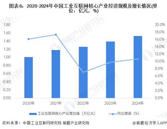 中国工业互联网研究院数据显示,我国工业互联网核心产业规模连续增长,2020年市场规模突破1万亿,初步统计2024年,我国工业互联网核心产业规模达1.53万亿元。我国工业互联网体系建设不断完善,融合应用不断深入,产业生态日益优化。
