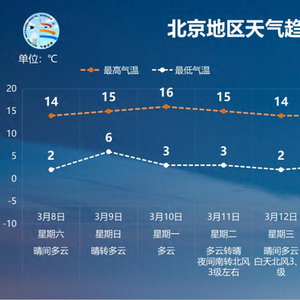 8日(周六)白天:晴间多云;北转南风2、3级;平原地区最高气温14℃,山区最高气温13~15℃;最小相对湿度25%。