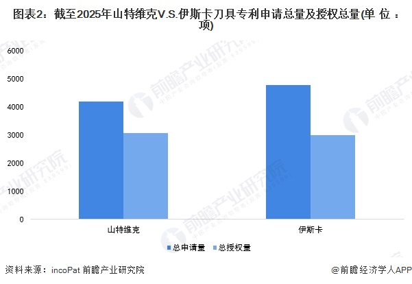 (1)专利申请量及授权量对比:伊斯卡在数量上相对领先,山特维克技术转化方面较强
