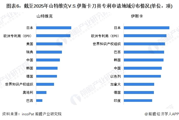 (4)专利申请地域对比:山特维克和伊斯卡分布区域广泛