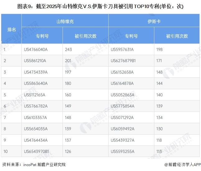 (7)被引专利对比:山特维克被引用专利较多