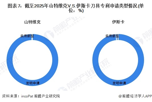 山特维克和伊斯卡刀具专利申请类型以发明专利为主。