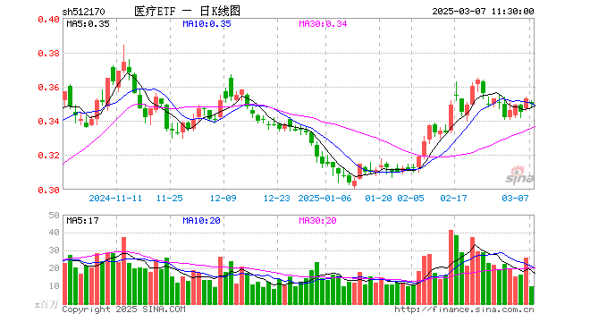 3月7日,截止午间收盘,医疗ETF(512170)跌0.85%,报0.350元,成交额3.38亿元。医疗ETF(512170)重仓股方面,迈瑞医疗截止午盘跌0.59%,药明康德涨0.87%,爱尔眼科跌1.99%,联影医疗跌1.98%,泰格医药跌1.88%,爱美客跌1.01%,新产业跌1.00%,康龙化成涨0.80%,鱼跃医疗跌0.40%,惠泰医疗涨0.72%。