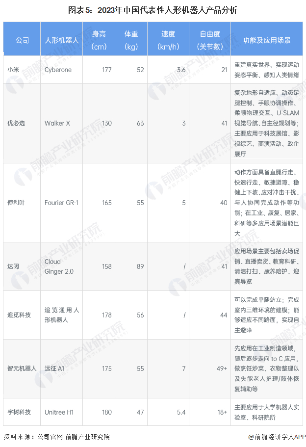 当前人形机器人的主要布局者多为科技公司,同时也有许多跨界公司加入。例如,小米Cyberone致力于重建真实世界、实现运动姿态平衡并感知人类情绪;优必选Walker X主要应用于科技展馆、影视综艺、商演活动以及政企展厅;傅利叶GR-1在工业、康复、居家和科研等多个领域有巨大的潜在应用价值;达闼Cloud Ginger 2.0的应用场景主要包括卖场促销、直播销售、教育科研、清洁打扫、康养陪护以及迎宾导览;智元机器人远征A1预计首先在工业制造领域应用,随后逐步向to C应用领域拓展。