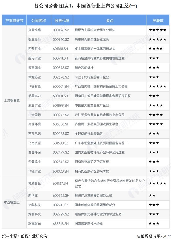 本文核心数据:中国锡行业上市公司汇总、营业收入、业务占比