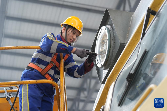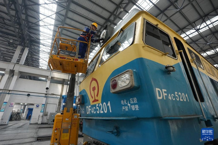 在中国铁路哈尔滨局集团有限公司哈尔滨机务段检修库,女子检修班组的机车钳工们为火车进行检修作业,保障“大粮仓”黑龙江省春耕备耕期间的种子、化肥、农机具等农业物资运输的运力安全。