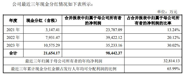 三是募资用途合理性。公司上市后曾多次融资,但在募资补充流动现金的同时,公司又在持续现金分红。2021年~2023年,公司的现金分红金额分别为3147.41万元、7931.47万元、10575.29万元,累计分红金额为2.165亿元。
