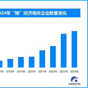天眼查专业版数据显示,截至目前我国现存在业、存续状态的“她”经济相关企业超833.4万家。其中,2024年新增注册相关企业约179.2万余家,从企业注册数量趋势来看,近十年间,“她”经济相关企业的注册数量呈现出逐年增长的态势,并在2024年注册量创下新高。