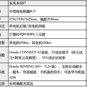 东风本田S7,被官方称为“史上最强本田纯电”,主打驾控乐趣、智能科技与极致安全三大卖点,承载着东风本田进军新能源市场的野心。