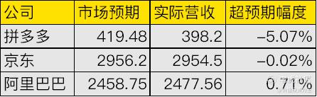 股价走势是四季报最佳注解,从核心数据来看,除阿里巴巴营收略超市场预期外,京东和拼多多皆不及预期: