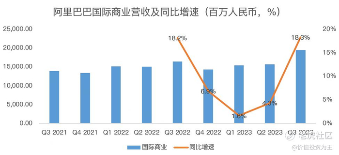 京东在海外扩张上几乎毫无建树,阿里巴巴国际商业营收增速缓慢,若国内电商失速,恐很难拉动阿里这艘巨舰: