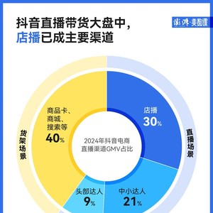 这些数据表明,在抖音平台,店播已显现出了巨大的发展潜力,带货销售额成绩早已超过达人直播带货。