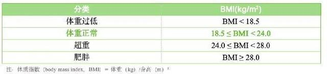 中国成年人体重分类标准