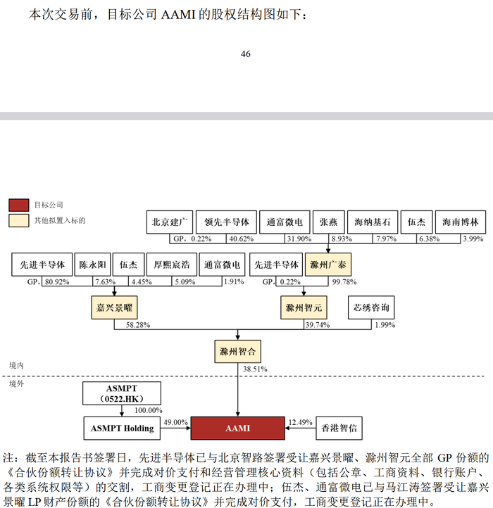 2025年2月底,至正股份(603991)调整收购先进封装材料国际有限公司(AMMI)99.97%股权的交易方案,由实控人王强控制的非上市公司先进半导体先行整合智路资本的GP(普通合伙人)权益,再由上市公司接手。