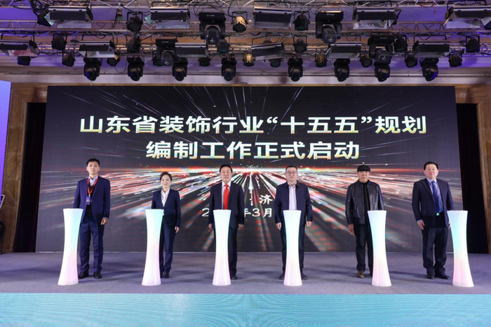 原中国建筑装饰协会住宅装饰装修委员会秘书长张仁、山东省轻工集体企业联社发展规划部副处长/山东省装饰协会党支部书记李会勇、山东省装饰协会执行会长兼秘书长 杨雯雯、山东英才学院设计学院院长周长积、乐园基建董事长/山东省装饰协会监事长陈勇、万旭宏业集团董事长/山东省装饰协会轮值会长彭震共同启动山东省装饰行业“十五五”规划编制工作。