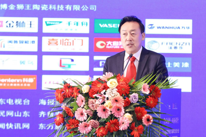 山东省装饰协会会长/淄博金狮王陶瓷有限公司董事长袁东峰作山东省装饰协会2024年工作报告