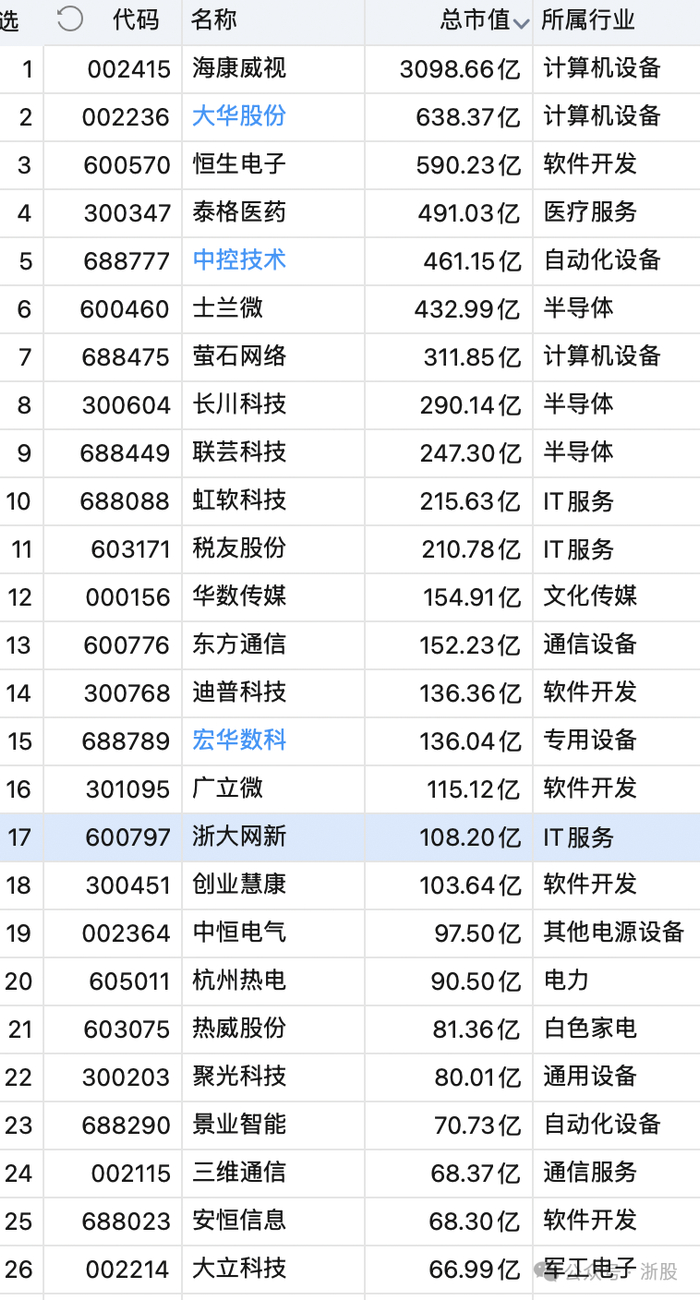 | 12 | 600797.SH | 浙大网新 | 19970418 |