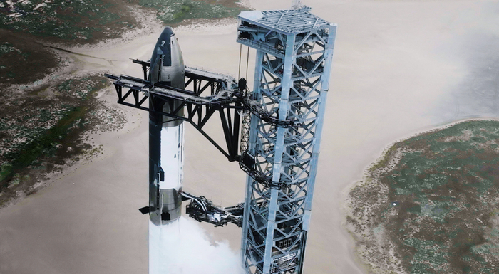 “星舰”于美国中部时间3月6日17时30左右从位于得克萨斯州博卡奇卡的基地发射升空,实施第八次试飞。两分多钟后,火箭第一级“超级重型”助推器和第二级飞船成功分离。发射后约7分钟,助推器返回发射场,被发射塔上的机械臂“夹住”。