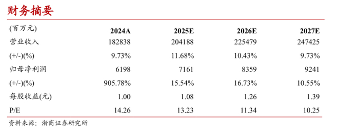 京东物流作为一体化供应链行业的龙头公司,业务量持续提升,规模效应逐渐显现,叠加京东物流接入淘天,公司营收有望进一步提升,预计2025-2027 年归母净利润分别为71.6、83.6、92.4亿元,对应 PE分别为13.2、11.3和 10.3倍,维持“增持”评级。