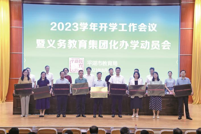 2023年,平湖市在规范现有教育集团和教共体的基础上,进一步放大优质学校的示范辐射作用,进行了新设组建或调整优化。这一年,平湖市成功组建了9个中小学教育集团,实现了义务教育全域集团化办学全覆盖。这些教育集团以市域内优质品牌学校为核心校,与乡镇成员校紧密合作,共同书写教育发展的新篇章。
