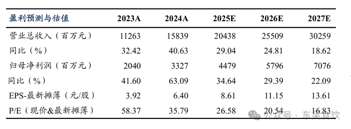 ■盈利预测与投资评级:结合公司最新业绩,我们预计2025-2027年归母净利润为44.8/58.0/70.8亿元,同比+35%、+29%、+22%,对应 PE为27、21、17倍,维持“买入”评级。