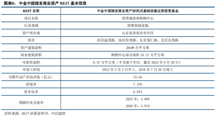 中金中国绿发商业资产REIT项目获受理,底层资产为济南市领秀城贵和购物中心,合计可租赁面积为8.47万平方米,拟募集规模为15.65亿元。