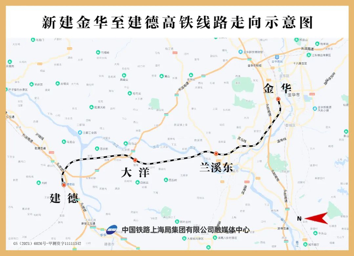 金建高铁自既有金华站引出,向北经兰溪市、建德市,在建德站接入杭黄高铁,全长64.51公里,设计时速250公里。沿线设金华、兰溪东、大洋、建德等4座车站,其中兰溪东站和大洋站为新建车站。