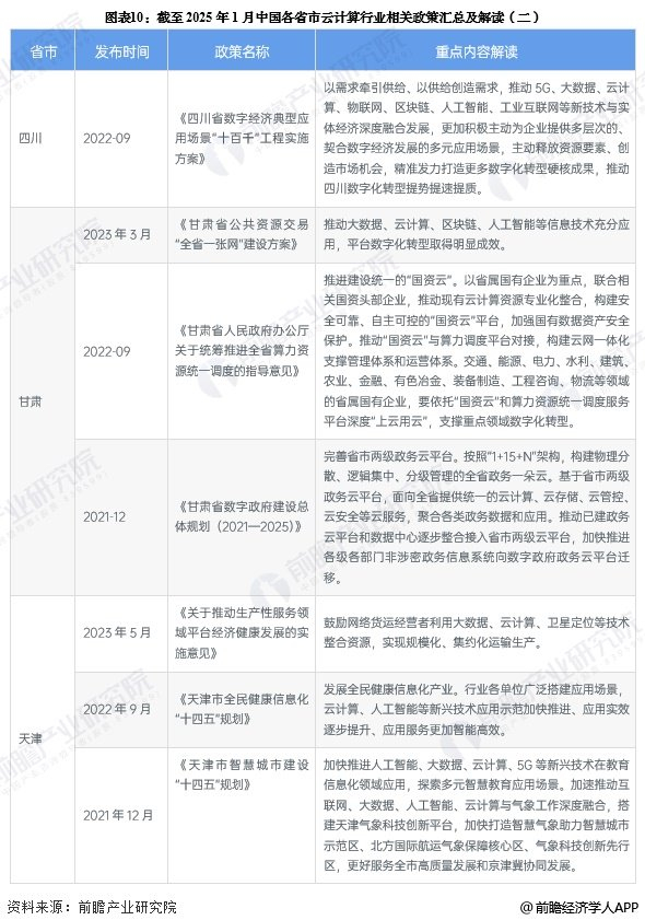 各省市依据云计算产业发展情况做出了不同的政策计划。山东省在提升云计算基础设施建设的同时,计划推动云计算与量子技术的融合;河南省计划保证云计算基础设施安全,从而提高文旅产业的发展效益;陕西省加快推进云计算等信息基础设施建设,加快产业数字化转型;甘肃省重点推进建设统一的“国资云”。