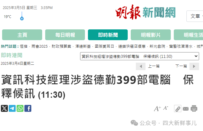 据香港《明报》2025年3月4日报道,德勤会计师事务所一名信息科技经理近日被控在两年间内,非法窃取公司399部手提计算机,涉案总值高达279万港元。