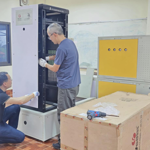 学院老师为"一带一路"梦工坊-信息网络布线实训室安装设备