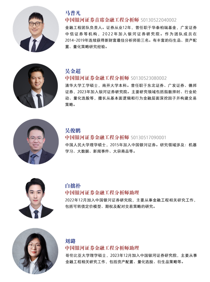 报告结论基于历史价格信息和统计规律,但二级市场受各种即时性政策影响易出现统计规律之外的走势,所以报告结论有可能无法正确预测市场发展,报告阅读者需审慎参考报告结论。历史收益不代表未来业绩表现,文中观点仅供参考,不构成投资建议。