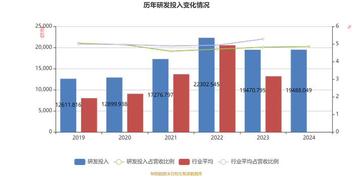 2024年全年,公司研发投入金额为1.95亿元,同比增长0.09%;研发投入占营业收入比例为4.86%,相比上年同期上升0.04个百分点。此外,公司全年研发投入资本化率为0%。